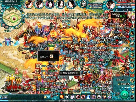 鏖兵中原,饮马黄河,帮派大战,《神兽》称王!《神兽》历史上具有划时代意义的帮派争霸战即将开启!在全新资料片“诸神之战”中,让我们与其他帮派一决高下!战鼓擂动,帮派争夺战全面升级;兄弟情深,并肩杀入全民PK时代!为了帮派的发展,帮众们需要寻找大量的威望、资金、贡献等,而最为有效迅速的获得方式就是进入帮派争霸场与其他帮派一起争夺稀有的战略资源!在资源争夺战中,战胜非本帮派的队伍均可获得积分,积分可兑换丰厚资源奖励,同时还能获得打造终极神器所必需的极品宝石哦!