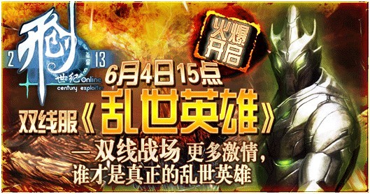 活动内容:6月4日 15:00至6月6日 24:00(乱世英雄)双线第一区,开启长达3天的游戏双倍经验,为您的江湖路犹添双翼!