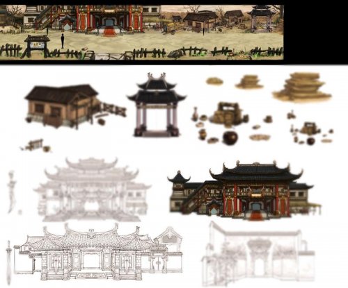 从拟真笔触到水墨山水,从小旭音乐到才女董贞,从山海经到封神榜,从2D到3D……中国风到底还能演绎出什么特色?这是关注国产网游的人都会产生的疑问。这几日手中拿到几张原画,是一款名为《战魂》的新游戏的场景原画,画面中蕴含的中国风特征非常明显,且注入了传统武侠的经典元素,可谓是又一款“中国风”网游。 但是,从这些场景原画中,可以明显看出此“中国风”网游所蕴含的特殊性——不符合常规的场景结构,带着典型的横版特征,难道这是一款以中国武侠为题材的横版游戏么?果真如此的话,这将使其在欧系、日系充斥的横版市场独树一帜。下面,让我们通过这些场景原画,对《战魂》的“中国风”创作元素进行一些猜想。