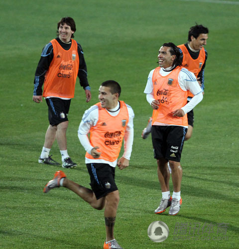 6月8日比勒陀利亚讯(记者廖斯庄、特约记者萧锋镝)南非时间6月8日下午4时,阿根廷国家队在位于比勒陀利亚大学的营地进行了一场公开训练,虽然训练的内容不多,但却乐趣横生。 |