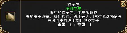 道具准备完毕,右键点击这两个道具就可以合成端午节期间才有的道具“端午粽子”了。在洛阳城的刀剑活动司仪眼中,这可是能够带来祥瑞的吉庆之物,赶快向他兑奖吧,最高可以获得“刀剑端午英雄”的限量称号,让你立马和周围的高手们区分开来!