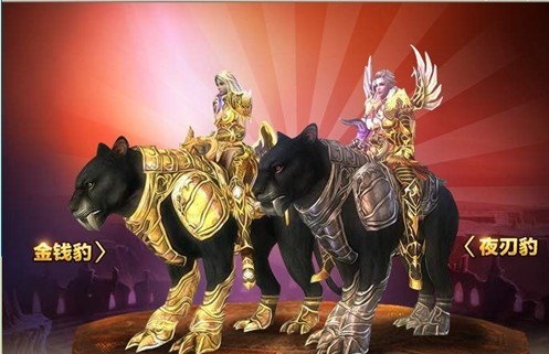猎豹系列坐骑分为:金钱豹和夜刃豹。猎豹虽是普通坐骑,但丝毫不减它的风采,奔跑起来犹如一阵轻风,留下一掠完美的剪影。(合成材料三级玛雅金属三个或三级玛雅宝石五个)。夜刃豹漆黑的颜色,锋利的牙齿,会给人一种敬而远之的感觉,拥有了它就是拥有一种身份。(材料合成三级玛雅金属十个或三级玛雅宝石二十四个)。金钱豹如黄金般闪亮的皮毛,黝黑的眼睛让人看见有畏惧之感。骑上它你会显得更有神奇感。(合成材料四级玛雅金属两个或四级玛雅宝石一个)。