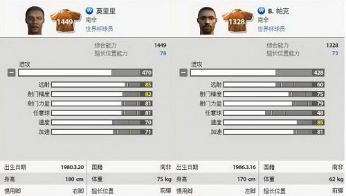 在左边前卫位置上,还有一名叫扎巴拉拉的球员数值值得注意,《2010 FIFA 世界杯Online》中速度95加速93的他绝对是现实中在奔跑能力上超群的类型,也许他在边路的快速奔跑可以为球队进攻打开窗口。