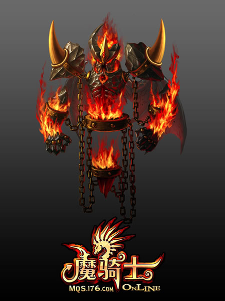 高级幻兽火龙铠化惊变 火龙将索伦多的伤口治愈后,复原的索伦多立刻招来另一只高级攻击性幻兽战马,同时授令战马施展“幻兽铠化”技能。该战马类属独角兽品种,身体为棕色,眼睛为深红色,高级战马头顶有一金属犄角,长约一英尺半,金光闪闪。只见索伦多一声令下,战马将踏在地上前脚掌撑起,慢慢直立于索伦多身后,战马坚硬的身体铠甲瞬间重组,以最快的速度包裹住索伦多的头部、肩部、背部、肘部以及腹部,使主人的皮肤像岩石一样坚硬,并立即为索伦多注入强大的魔法灵力,同时金属犄角无限伸长变大,成为主人手中的巨型长锥,极大提高了攻击的致命性。与幻兽铠化之后的索伦多摇身一变,成为人形战马,感觉全身充满了新生的血液和力量,他用盾牌护身,同时将魔光环绕的长锥高高举起,开始以光的速度对准血魔持续猛刺,展开强大而致命的魔法攻击和物理攻击。