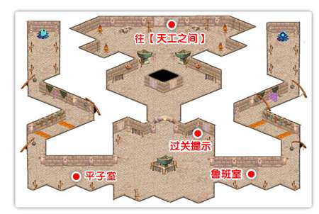 过关提示-打倒石百夫长再打破“平子室”与“鲁班室”底端的小水晶之后才能离开此处。