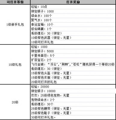 1-20级奖励物品