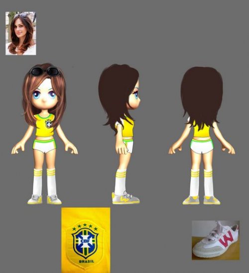 图为91wan《飞天西游》巴西女足的世界杯队服,依旧是充满美丽黄色的球服,与男足的不同之处体现在女足的露脐装。黄色的紧身球衣,时尚的紧身短裤,绿色的边脚,张扬不羁,散发出女性无穷的魅力。飞天西游中世界杯女队员动作攻击为左边胳膊夹住足球,右脚踢人,魔法动作为左边胳膊夹住足球,向侧上方挥动右臂。