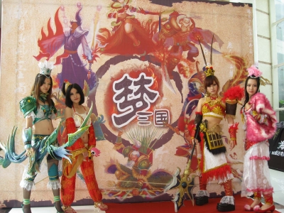 现场有漂亮的MM COSPLAY哦~~~没错你没看错,右边第二位就是女版吕布,是不是也很养眼呀?