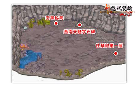 《新绝带双骄ol》里的峨嵋禁地,位于峨嵋派归云秘径的最左边,这是一个风景优美的地方,然而却暗藏杀机。要想踏入此地,除了必须要有一身好武艺之外还要持有“燕南天藏宝图”。江湖上盛传,燕南天在进入恶人谷前,将毕生所搜集的宝藏藏在峨嵋禁地中的某处,虽然没人能够证实,但是总有人手上持着不知是真是假的藏宝图要前往寻宝,各路武林高手勾心斗角、使尽绝活,为的就是得到这份宝藏。