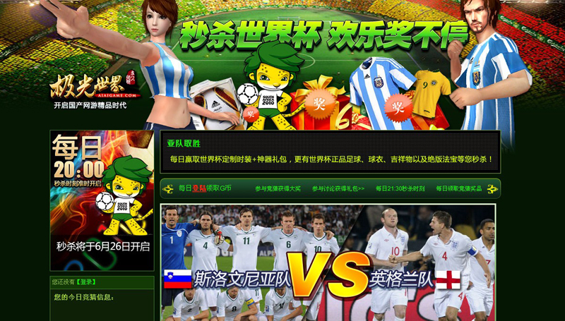 3D巨作《极光世界》秒杀世界杯 欢乐奖不停