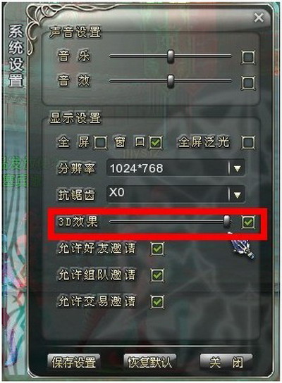 那么在实际游戏中是否需要非常复杂的手动设置,才能够实现双3D效果呢?各位玩家不必担心,《勇士OL》内置一键还原的贴心模式,让玩家在普通3D模式和立体特效3D中来去自如,就像切换页面一样方便简单。玩家只要在“系统设置”中选择“3D效果”选项,就可以随意选择特效程度(左边最小,右边最大)。