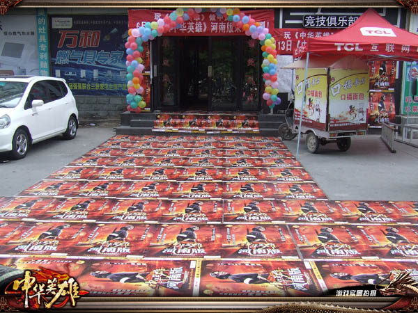 网吧外被《中华英雄》河南版海报铺成一片火红