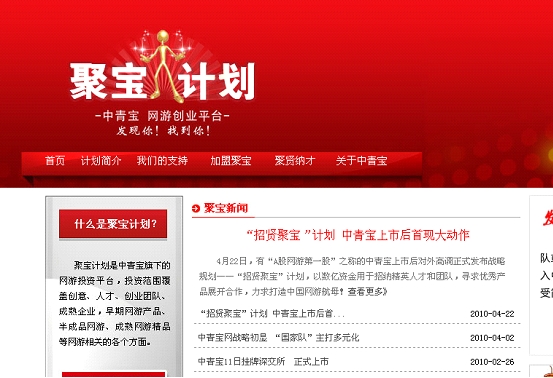 据了解,“招贤聚宝”计划是中青宝面向全国网游人才、产品、创业团队、企业展开的大型网游战略发展计划,通过寻找优秀人才、潜力产品、创业团队实现合作共赢,分享中青宝优秀的资本平台及研发运营经验,携手打造精品网游。