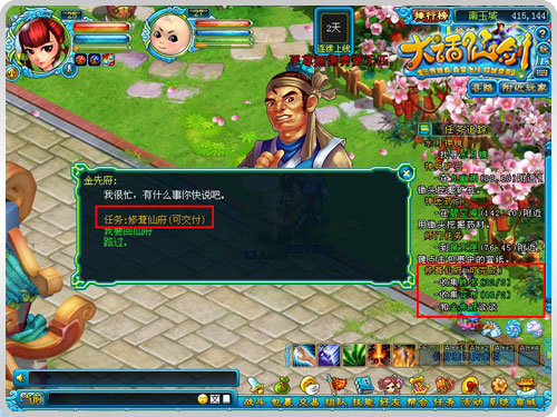 畅游游戏,开心生活,在仙剑中寻找到真知与游戏的乐趣是每个玩家的共识。除了任务、打怪、练级之外,休闲的生活模式也接踵而来。在当今大时代的浪潮下,房子成了人们生活模式的必需品,它是人们安居乐业的根本所在,是家的根本。 《大话仙剑》特设立仙府家园,给玩家足够的空间和时间打造自己的个性小屋。只要达到25级即可激活仙府系统,在金仙府处领取仙府任务,完成任务后就会有一个属于自己的仙府家园。