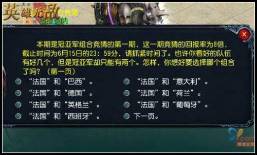网络游戏《英雄无敌在线》世界杯风云竞猜