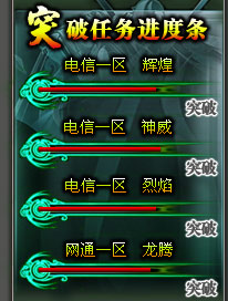 内容:官网首页全服实力进度条率先充满的服务器第二日开放突破任务:晚上20:00在五大门派某处分别会同时出现四个武功怪异的火药系天竺迦兰僧,若在20:30分前五大门派共二十个迦兰僧被成功击杀则服务器突破50级极限成功;若在20:30分前还有一个以上的迦兰僧未被击杀,则该迦兰僧立即消失逃逸,同时该服务器突破50级极限失败,等待第二日继续突破!