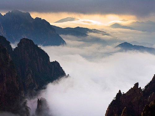 云海乃是黄山一绝。确切地说,参照黄山云海绘制的,是剑仙谷的登仙崖。每个新人来到这里,在壮阔的群山之前,修仙的信念都会更加坚定。