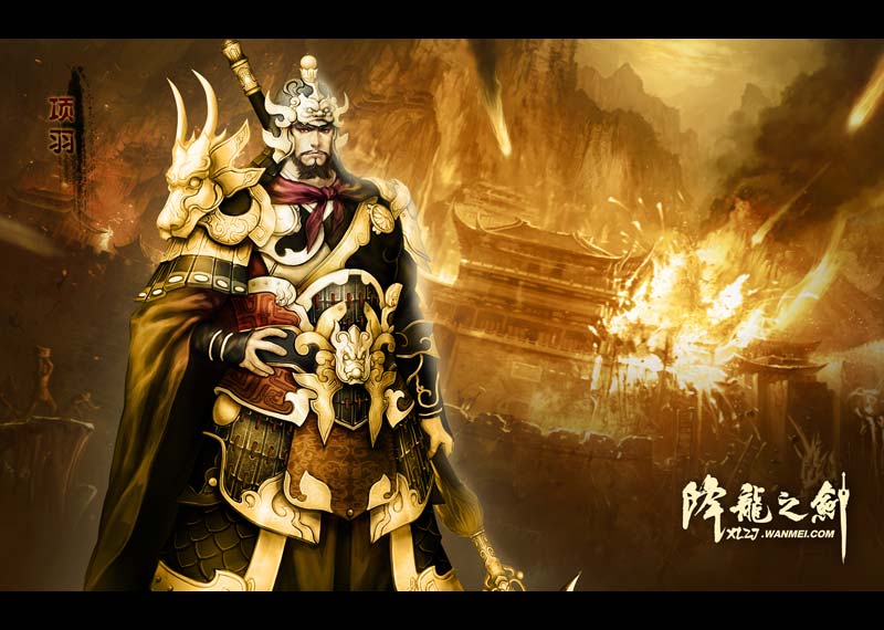 楚汉争天下 霸王悲自刎 功法传虎卫 盘龙成戟神 盘龙戟不知产生于何时,拥有强大的杀伤力。同时因为镶嵌的盘龙之镜碎片,而会让拥有者充满活力与力量。那些崇尚刚猛的战斗路数,追求极致杀伤力的修炼者,则被称之为“虎卫”,意图成为盘龙戟真正的主人。楚汉时期的西楚霸王项羽就是当时虎卫的掌门人,曾在巨鹿之战中手持盘龙戟连战60余名汉将,九战九捷、大获全胜,使更多追求力量的人投入虎卫门下。 《降龙之剑》-神器盘龙戟 《降龙之剑》-虎卫掌门人项羽