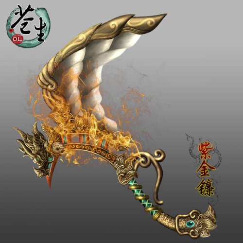 镰如其名,通体由稀有紫金打造,又经名匠精雕细琢,似为大雅之品,却不知此镰锋芒内敛,割物裂魂犹如草芥。