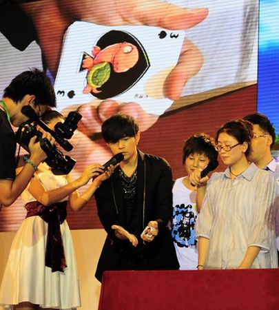2010年,周杰伦为网络游戏《梦幻西游》做代言,在发布会现场用扑克牌玩起了魔术。对比以前的魔兽代言,周董的功力似乎有所萎缩,因为小编我实在想不出梦幻西游和扑克牌到底有着什么必然的联系。