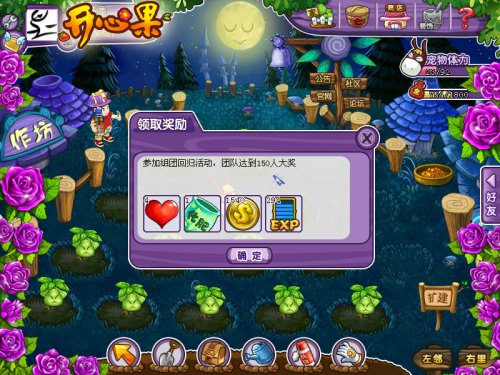 丰厚奖励 组团可以促进广大玩家的互动,让大家交更多的朋友。不过丰厚的奖励也是不能忽视的哦!组团满10人,团队所有成员就可以获得烟花果、高级化肥以及经验值和金钱奖励;再从10人到25人、到50人……最后到两百人,奖励更是一重高一重! 而身为团长,更是有超级大家等着他们,“白天场景1套,高级化肥30包,超级化肥10包,奶牛宠物1个, 囧果5个”,多么诱人的第一名奖励。但是在第一次组团中,竟然有8个团满人,8位团长都获得了第一名的超级大奖!那么这次组团,会不会有更多的超级大奖出现呢? 一不留神就150人啦? |