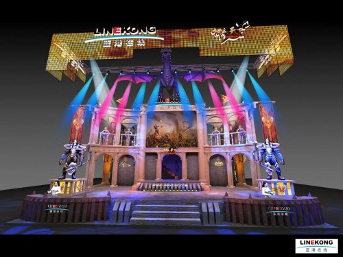 凌空而起的巨型彩幕上凸显出了《佣兵天下》的LOGO字样,紧随在蓝港在线的LOGO之后,显示出了蓝港对这款年度大作的必胜信心。展翅欲飞的巨龙预示着《佣兵天下》将在不久的将来一飞冲天! 展台正面 |