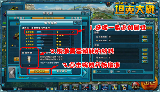 选择准备锻造的一条属性,显示需要消耗的材料,最后点击开始锻造 |