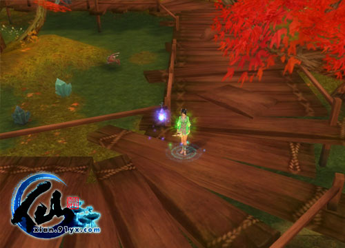 小道右手边是一块面积颇大的河流,河水清澈,水中偶见鱼儿跳动。不远处可见一座瀑布高悬而下,水花四溅,使得附近小岛上形成一些陆上的浅水洼。沿路前进,会遇到枫林湾的龙门泽。龙门泽看似呈半圆形,泽水清澈见底,中间有一名为“禹门”的石像,上刻有鱼跃龙门之事。在龙门泽处有一叉路,一条向右,便是一座刻有鱼跃龙门雕画的石桥,通过此桥,可上得一块有浅水洼的小块湿地;一条继续向前,走完红枫林时,也会上得石桥,经过一座瀑布与一条河流,再经一片与红枫相似的黄枫叶林。黄枫林处未有雕像,倒是各种食草动物活跃,随处可见枫叶建筑的巢穴。在黄枫林东面,是一片到处坑坑洼洼的绿草之地,水洼中有地水翻涌,地水流出形成大片湿地,吸引了不少两栖生物聚居。 龙门泽美景 |