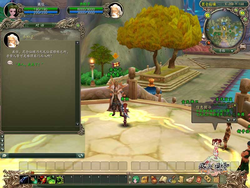 奈何风景再美,不能忘却重任在身。欣赏美景后还要响应南岳真人——赤松子的召唤,接受拯救大荒世界的重任。与真人对话后才知,仙境乃九天仙家修炼之所,寻常人等难得其门而入,只因此地为引导初来大荒的新人进行新手修炼的场所。领了真人交予的任务,玩家在“飞天”世界也算迈出了上古历炼的第一步。 |