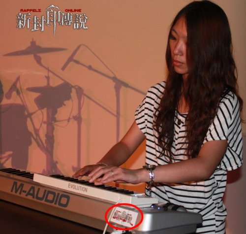 【世博演出现场花絮之二:键盘手的键盘】 人气超高的台裔键盘手徐浩芸MM,如果不注意她的键盘的话,可能不会发现一个小秘密哦。看来在乐器的个性展示上,女生会比较低调些。
