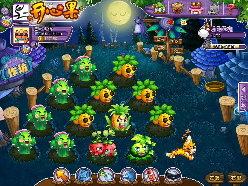 年度明星——贺春虎 大家不要纠结于为什么在盛夏还有“贺春”的小家伙在果园到处乱窜。既然是虎虎生威的虎年,贺春虎可能要在果园活跃一整年。而且贺春虎本身又吉祥又有活力,红一整年也有可能哦。还是在果园助手处,“烟花和爱心果兑换活动”中,我们可以用350个烟花果实雇佣贺春虎14天,一天25,身价非凡。 贺春虎有时也会偷偷懒哦 |