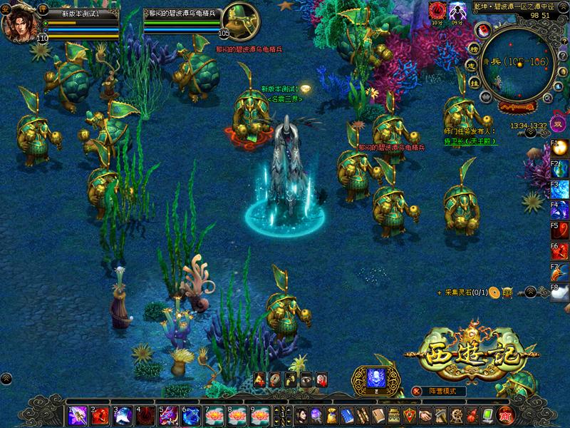 -碧波潭鱼卒 碧波潭鱼卒身穿金甲,手拿鱼叉,模样甚是威猛。尽心尽力守卫着碧波潭一区之潭中枢。 杀机四伏的碧波潭 碧波潭中美景绝伦,金银满地,却又杀机四伏,刚刚闯过鱼卒阵,此厢又身陷龟兵营。碧波潭乌龟精兵身穿重甲,手拿灯笼锤,虽行动笨拙,但力大无比,奉劝玩家切记不要招惹。