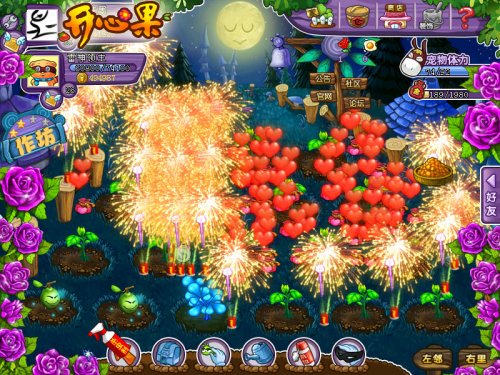 不停的庆典 有一些果园主总是没来由的开心,无论白天黑夜,总喜欢燃起烟花和爱心包,摆成各种文字和图案,让果园里流光溢彩。虽然不知道大家在庆祝什么,但他们一定是一群热爱生活的人。希望大家可以永远开心,果园里烟花不断、庆典不停。 精彩不停,快乐不断 《开心果》未来还将开放更多精彩场景,陪我们经历更多故事。亲爱的玩家,你的果园是什么样子的呢?未来的喜怒哀乐,《开心果》将陪你一起度过!一起来玩吧! 关于《开心果》: 《开心果》是国内第一款桌面社交游戏,是由火石软件自主研发的一款Q版风格的,2D类型休闲游戏,拥有超精美画面,超可爱水果和免费模式。超小客户端,一分钟内完成下载。赶紧带上您的好朋友,每天5分钟,无负担享受开心体验! 最受玩家肯定的四大玩法包括:偷菜玩法、超爽捡钱、爆笑宠物、个性水果。在《开心果》里面,每一个水果和宠物,都能让您充满惊喜、爱不释手。 7月15日,《开心果》全新作坊系统开启测试,敬请体验更多精彩! [编辑:糖糖] |