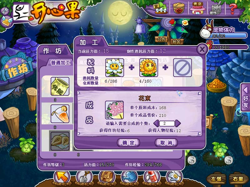 第三节:《开心果》作坊入门 作坊又是什么?关注《开心果》的玩家都知道,作坊系统是《开心果》推出的全新系统,目前正在火热测试中。虽然作坊也属于玩法的一部分,但是它太吸引人了,必须单独开篇讲解。 通过作坊,玩家可以用对果实进行加工,合成各种既有趣又实用的道具。例如,合成花束、辣椒酱等道具,卖掉后可以赚很多钱;合成鲜花鸡蛋,放置在好友果园表示赞美或鄙视;还有各种道具,提升玩家效率,增加游戏趣味,例如神偷手套、超级化肥。 神奇作坊趣味合成 好了,由于篇幅关系,今天的《开心果》百家讲坛就到这里。虽然讲的含含糊糊,不过相信大家对《开心果》依然多了一份了解,多了一份热爱呢?想了解更多信息,请关注《开心果》官方网站。最后别忘了每天畅玩《开心果》哦,《开心果》,有你更开心! 关于《开心果》: 《开心果》是国内第一款桌面社交游戏,是由火石软件自主研发的一款Q版风格的,2D类型休闲游戏,拥有超精美画面,超可爱水果和免费模式。超小客户端,一分钟内完成下载。赶紧带上您的好朋友,每天5分钟,无负担享受开心体验! 最受玩家肯定的四大玩法包括:偷菜玩法、超爽捡钱、爆笑宠物、个性水果。在《开心果》里面,每一个水果和宠物,都能让您充满惊喜、爱不释手。 7月15日,《开心果》全新作坊系统将会开启测试,敬请期待! [编辑:糖糖] |
