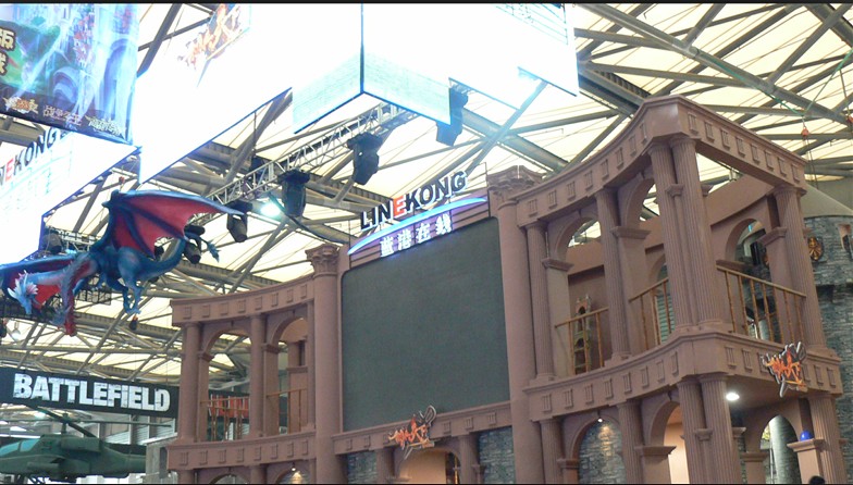佣兵梦幻城堡惊艳亮相 与现场震撼视频交相辉映的就是蓝港在线精心搭建的佣兵梦幻城堡!充满了神秘的西方奇幻色彩、佣兵城堡气势恢宏!凌空而起的巨型彩幕将蓝港在线的LOGO映衬的分外醒目;展翅欲飞的巨龙、霓虹装饰的镭射彩灯、充分展现高科技实力的雾墙效果将佣兵城堡装点得如梦似幻。温馨舒适的VIP会议室让嘉宾感觉到宾至如归,而看似随意点缀却又无处不在的佣兵元素更是凸现出了蓝港在线此次参展的主题,引来了现场不少玩家驻足并拍照留念。 佣兵梦幻城堡 |