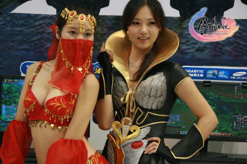 游戏另外一位COSER却是一身劲装,黑色的紧身衣凸显出亭亭玉立的身材,透出一股英姿飒爽的味道,清纯甜美的笑容让人感觉自然亲切,红唇皓齿,眉目如画,雪白的肌肤在黑衣的衬托下愈发晶莹剔透,让人忍不住想多看两眼。