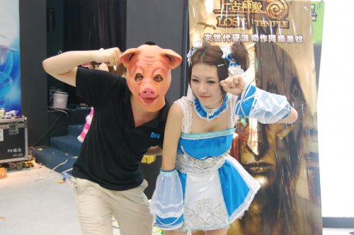 猥琐猪头与金山游戏美女COS在一起嚓嚓嚓