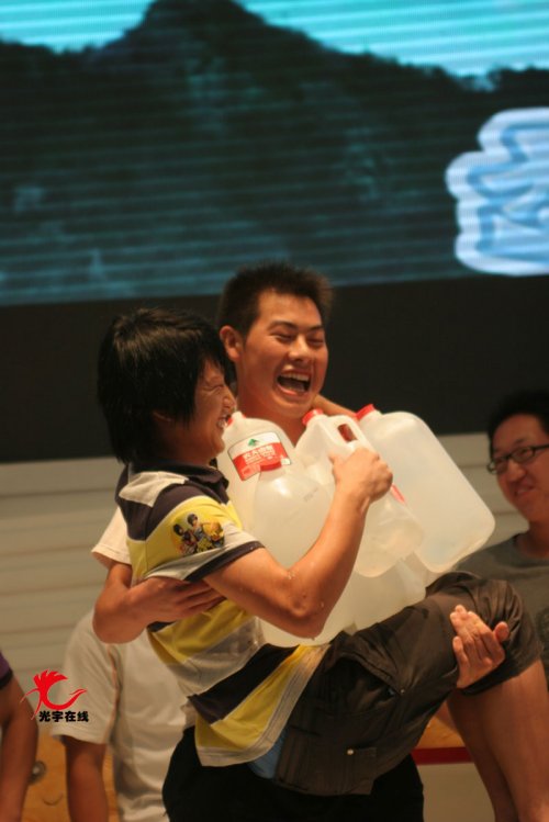 《梦幻蜀山》别具特色的副本系统有着惊人的魅力, 游戏外的CJ现场副本“梦幻抱抱团”也让玩家开心异常。在CJ现场光宇游戏的展台活动,玩家要把搭档抱起蹲下,然后站起来,每蹲下一次在他身上加一个2升的矿泉水,最后身上的矿泉水最多者就是这次副本活动的获胜者。这个现场副本活动考验的不是玩家的装备、不是操作,而是挑战玩家的配合和耐力。兴趣盎然的玩家在此次活动中甚至有的玩到了脱力。众多玩家在活动中体验到的分不清是欢乐还是痛苦,也许这就是“痛并快乐着”吧!