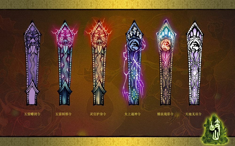 令牌——出征打仗、发号施令的信物。俗话说“见令如面君”,一令在手,调兵遣将,纵横通行,无所不能。《岐山》中迅龙令、玄光令、琉彩令……晶莹剔透,炫彩夺目。