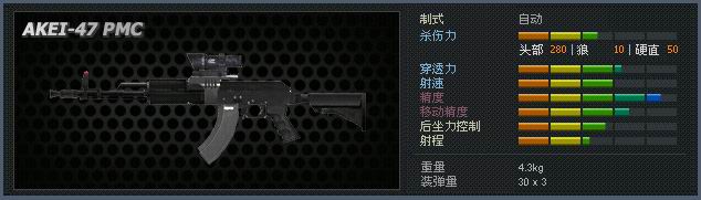 AKEI-47的升级型号,枪托底板和导轨采用复合材料,让它更适合现代战争。与旧款相比,降低了速射能力,让它的操控更加容易。