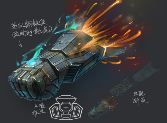 看点五:最新的首曝秘图 此前《无限世界》对外一直保持着低调与神秘,只有屈指可数的几张概念图放出,这次在官网的“原画欣赏”一栏,居然能找到些许从未曝光的设计图稿,可算是一个意外的惊喜。以下图为例,看上去好像是从机甲中脱离飞击的手臂? 飞行铁拳? 降龙掌法? 官网到此一游结束,趣游天际这家公司,给人最大的印象就是新奇的想法一波接一波层出不穷,希望他们能把这些精力与创造力,都完整的投放到具体的游戏研发中,如此,则游戏幸矣,玩家幸矣。 [编辑:灰色] |