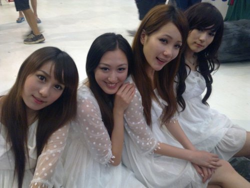 四个白裙showgirl围坐一起,犹如仙女下凡~