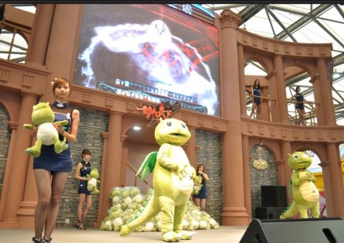 根据《佣兵天下》游戏中可爱的绿儿形象量身打造的小绿龙周边,在本届CJ期间可谓是出尽了风头!大号的绿龙人偶巡游会场,引得无数热情的女玩家争先恐后的和它合影留念;实用的小扇子、精致的公交卡套,都成为了玩家珍爱的收藏;而为了赢得一只小绿龙玩偶作为奖品,无数玩家在蓝港在线的展台附近排起了长龙;堆放在舞台上作为背景的小绿龙玩偶更是数次遭遇玩家疯抢;展台上美丽的showgirl们对这只小绿龙也是爱不释手,而携带小绿龙的工作人员则在CJ会场被热情玩家围追堵截……绿儿大人当之无愧的成为了本届CJ最受欢迎的宠物周边!