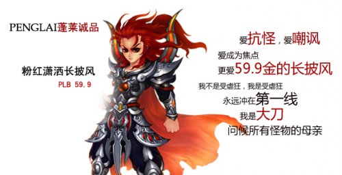 凡客体,即:凡客诚品(VANCL)广告文案宣传的文体,该广告意在戏谑主流文化,彰显该品牌的个性形象。然其另类手法也招致不少网友围观,网络上出现了大批恶搞凡客体的帖子,代言人也被掉包成小沈阳、凤姐、郭德纲、陈冠希等名人。其广告词更是极尽调侃,令人捧腹,被网友恶搞为“烦客体”。 而拥有大批玩家的网游《蓬莱》也未能幸免,早有高手将其对四大门派的怨念用凡客体表露了出来,并迅速在《蓬莱》的论坛走红,让广大玩家在捧腹之余,也产生了深深的认同感。 大刀 游戏简介: 《蓬莱》为深圳亿佳网络2010年首款精致中国风神话巨作。游戏以架空的蓬莱传说神话世界为背景,以精致中国风画面为主要特色。采用了全新的3D优化以及动漫制作工艺!意图为玩家打造一个充满梦幻的纯正中国风神话世界!