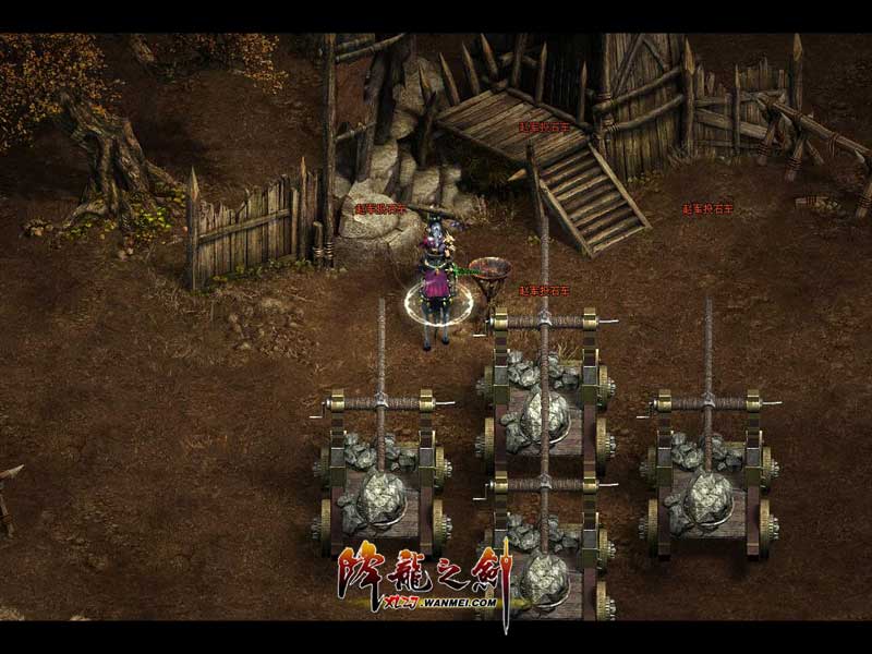 赵军的弓箭手队 一:弓箭手 地图的东方是我军的弓箭手方阵,每隔20秒玩家可以与自己的弓手头领对话,向赵军大阵发射箭雨,受到箭雨攻击的赵军将损失许多生命。但是,敌人将会经常派兵突袭我方脆弱的弓箭手,一旦弓箭手被全歼,我方将失去重要的火力支援。 敌军投石车能左右整个战局 二:投石车 比弓箭手队更能对敌军造成伤害的,就是我军的投石车阵了,投石车阵位于地图的西南,每1分钟就能攻击一次赵军,不过同样需要玩家去下达命令。同时,玩家消灭敌军投石车部队时缴获的投石车弹药也能为己方的投石车部队增添额外的攻击机会。