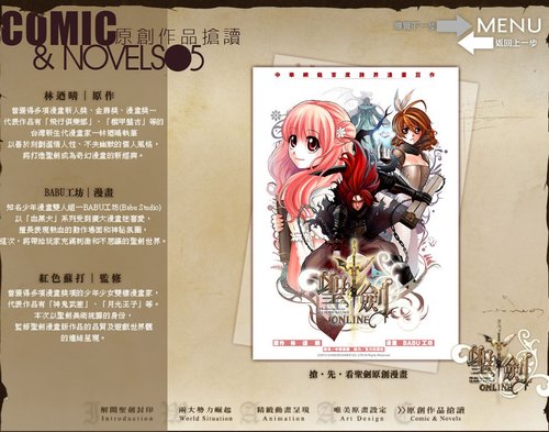 在历经长久时间之后黑暗势力再度崛起,北方征服领域及南方圣殿联盟,两大联盟凭借圣剑之力击退邪恶,不过世界的平和却因圣剑的遗落而再度陷入混战。本次官方与台湾角川共同计划推出《圣剑Online》专属同名小说,并由已出版60余部畅销作品的超人气小说家典心执笔,首次挑战中古世纪欧洲神秘奇幻题材,未上市发行的《圣剑Online》同名小说第一回连载内容,今日于形象官网首度公开。 圣剑Online