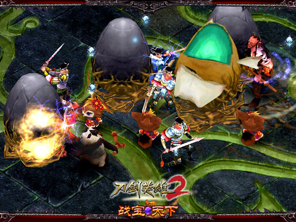 《刀剑英雄2》在每个月的第一周和第三周的周六都会举行禹王陵墓欢庆活动,当天的11:30-13:30和20:30-22:30禹王陵墓会准时开启。据说陵墓内不仅藏宝无数,是名副其实的掘金圣地,更加神奇的是敢于进入古墓的英雄,都会得到丰厚的经验奖励! 啊!眼前出现好多蛋。他们就是陵墓中的敌人!