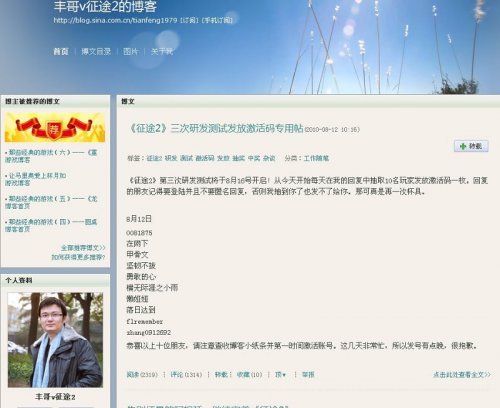 友情提醒: 1、 领取到激活码的玩家请在第一时间激活自己的账号哦。 2、 已参加过前两次测试的账号无需激活码就能参加第三次研发测试。 在论坛暂时没有得到激活码的玩家也不用着急,您还可以通过《征途2》多家官方合作媒体,参与各种发号活动领取激活码。 此外,《征途2》主策丰哥的博客每天也会随机抽取十位幸运玩家,只要您在相关博文中回复,就有机会获得激活码。 丰哥博客 [编辑:糖糖] |
