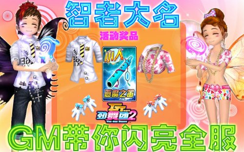 你是《GT劲舞团2》里最聪明的人吗?你想成为《GT劲舞团2》里面传说中的智者吗?那你还等什么。今年暑假《GT劲舞团2》为你准备了成为智者的康庄大道。只要你在规定的时间规定的频道里参与智者达人的活动,那么你将有机会成为别人眼里的偶像。 活动时间:2010年8月14日—28日每周六 活动期间我们的GM会提前的告知你活动地点,这个时候聪明的你可就千万不要错过这个千载难逢的好机会哦!回答GM提出的问题,第一时间刷出你的喇叭及正确答案的人,就将会得到GM送出的智者礼品,然后每日里抢答问题最多的那一位才是我们的智者冠军。不过如果当天答对问题的人都只答对了一题,将无人可获得我们的智者冠军大礼包哦!每天15道题目,每道题目思考时间为5分钟,超出时间那么就只有对你说声Game over。