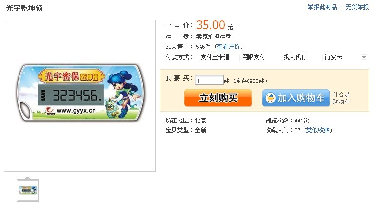 保护《问道》帐号安全 全新光宇乾坤锁上市